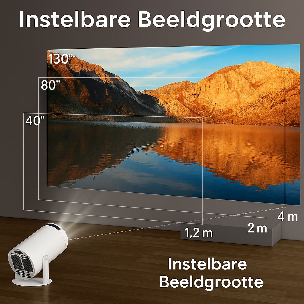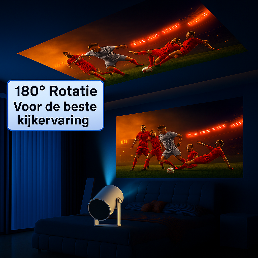 Dankzij de unieke 180°-projectie geniet je van ultieme flexibiliteit: projecteer moeiteloos op muren, plafonds of zelfs in hoeken – voor een compleet meeslepende kijkervaring.