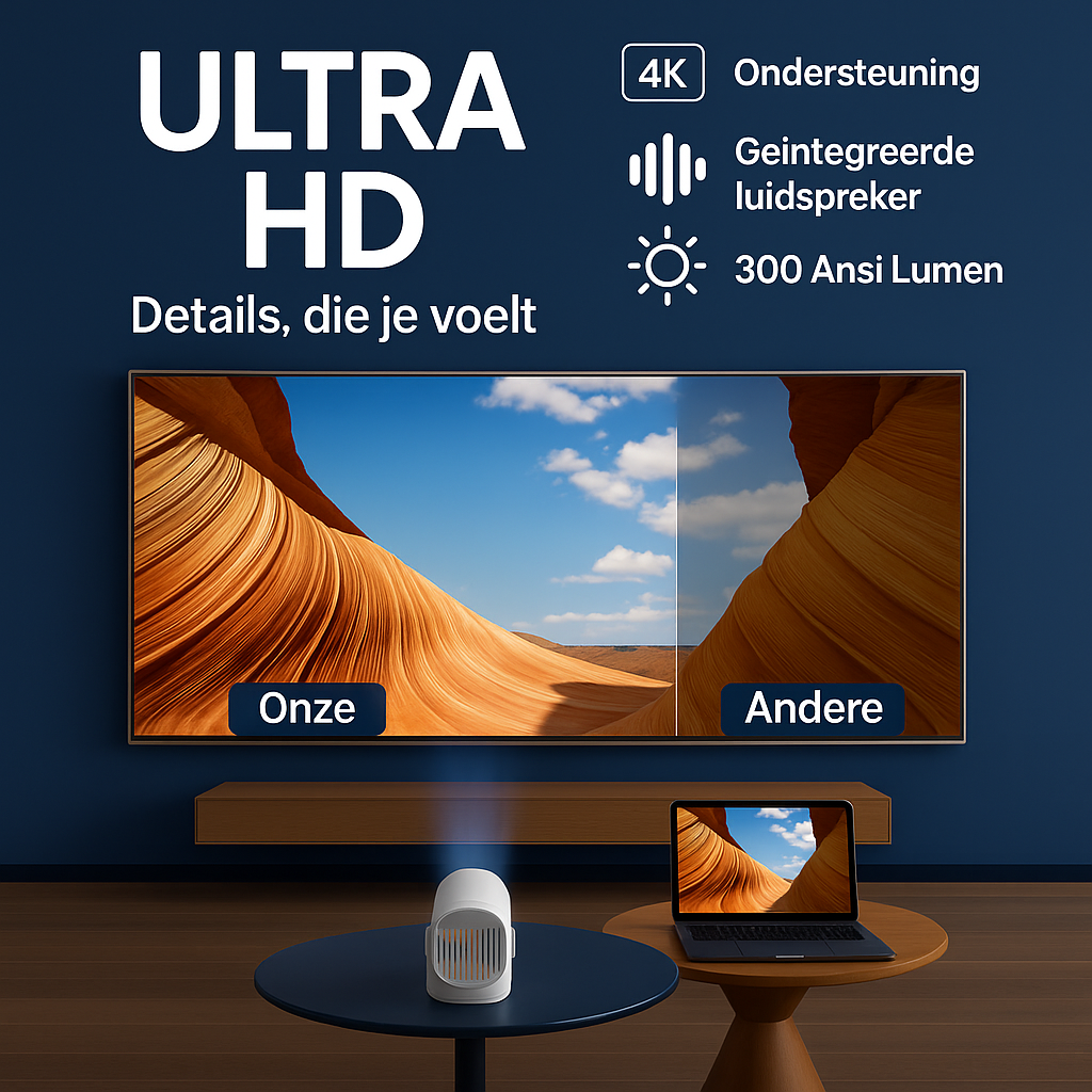 Onze projector biedt je een bioscoopervaring die geen enkele tv kan evenaren. Compact, stijlvol en vol slimme functies – altijd en overal genieten van jouw favoriete content.