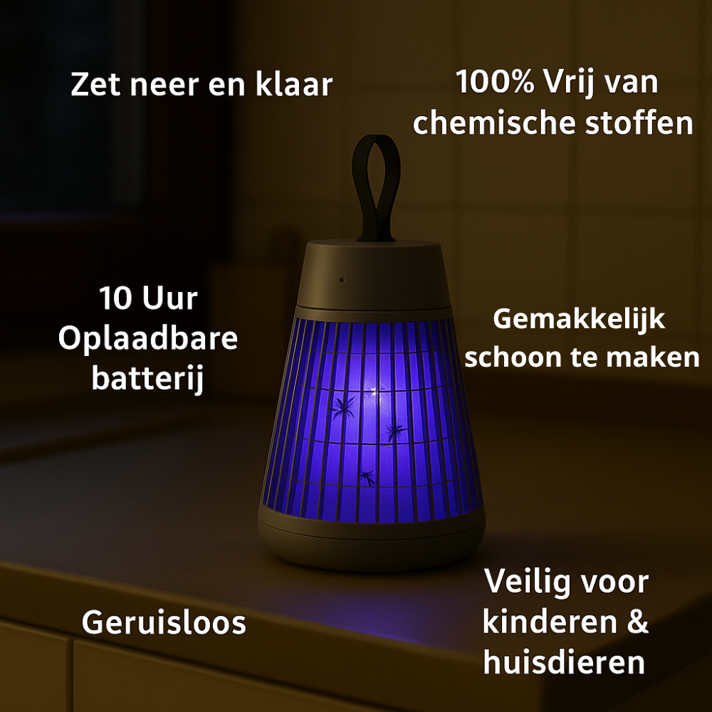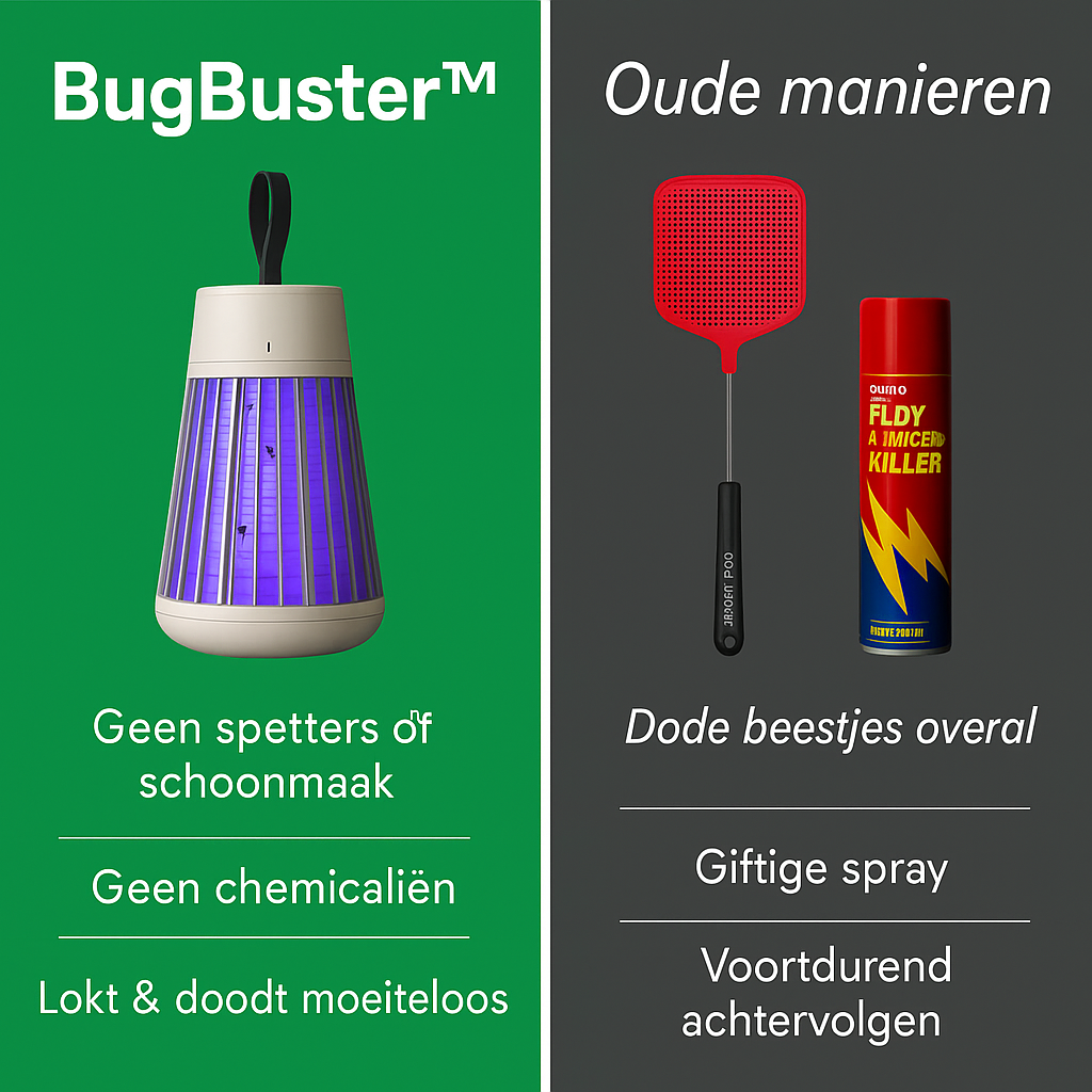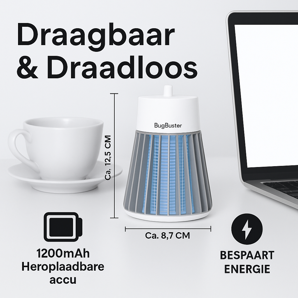 De BugBuster biedt betrouwbare bescherming tegen muggen, vliegen en andere insecten – zowel binnen als buiten.
