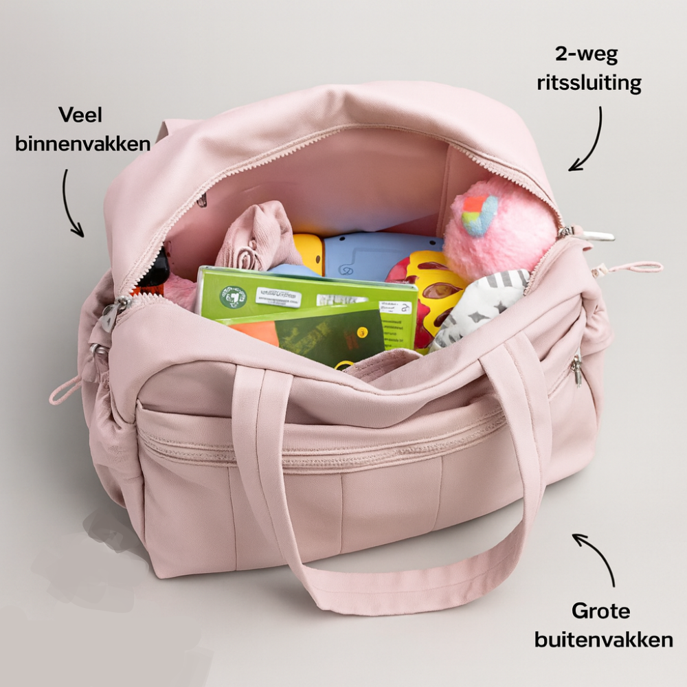 De tas biedt genoeg ruimte voor luiers, flesjes, speelgoed en kleding. Dankzij de slimme vakindeling blijft alles overzichtelijk.